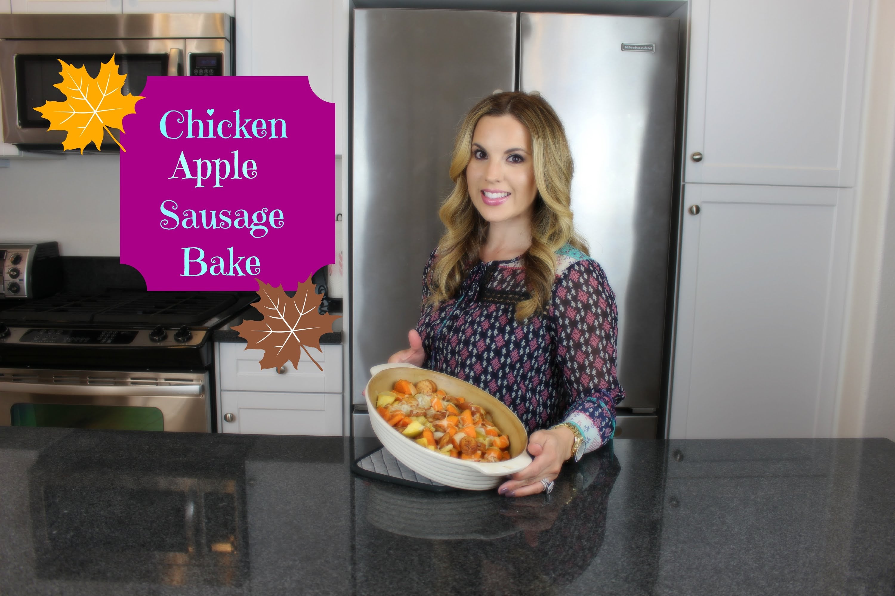 Preheat the oven to 350* Chop the sweet potato and put in a pan of water on the stove and boil for about 8 mins. Next chop the sausages, apple, and onion. Once the sweet potatoes are done boiling place them in a pan on the oven with the onion and sauté with 1T of coconut oil. Once that starts to sauté and cook up add the sausages and apple. Season with whatever seasonings you would like. When everything is cooked through put everything into a baking dish and bake in the oven for 10-12 minutes.