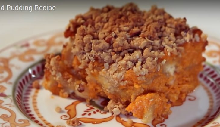 Paula/John — http://www.foodnetwork.com/recipes/paula-deen/sweet-potato-bread-pudding-with-pecan-crumble-recipe/reviews/index.html