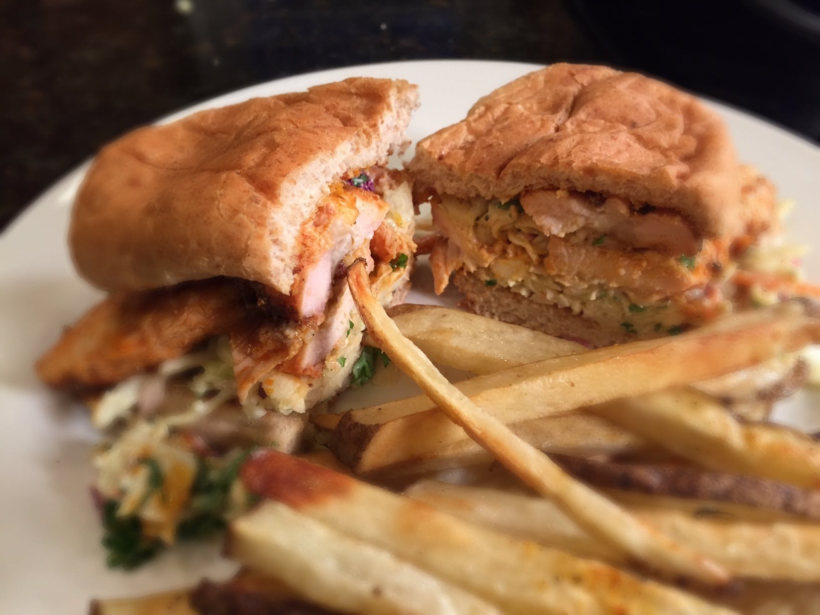 This Buffalo chicken sandwich recipe is smoked, then grilled, and topped with a crispy, cool blue cheese cole slaw. Cole Slaw recipe posted as well.