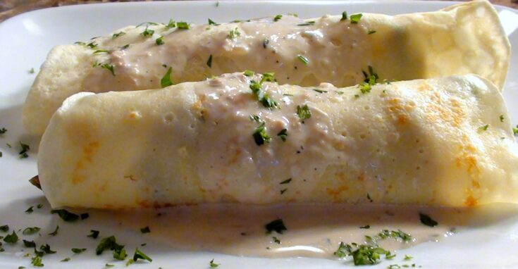 Chicken and Asparagus Crepes with Mushrooom Cream Sauce ~Lyndsay the Kitchen Witch