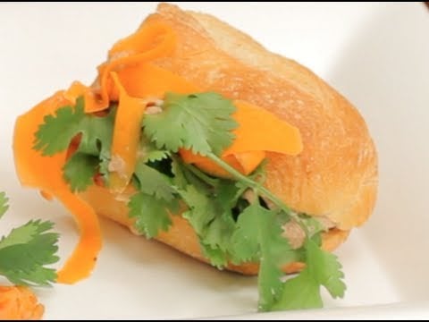 Celebrity Chef Diane Dimeo is making Banh Mi! This Vietnamese sandwich is a marriage of deliciousness, with ingredients like rich chicken liver pate (watch that recipe here: http://bit.ly/11WJi1C), succulent chicken thighs, pickled carrots, fresh cilantro and Sriracha mayo (Bootleg Tip video on making your own sriracha mayo right here: http://bit.ly/15XOoiB). Watch Chef Diane Dimeo’s personal recipe for making the ultimate banh mi sandwich.