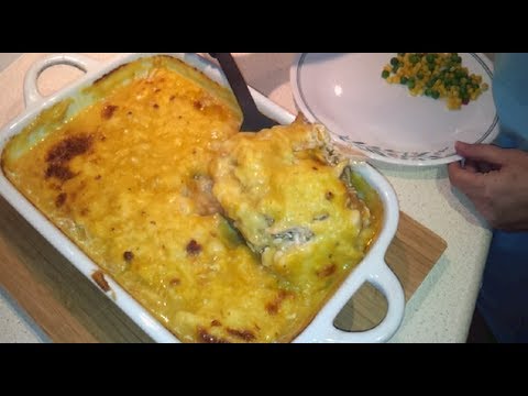 Bake for about 40-45 minutes until the casserole is set. My oven is fan-forced so it was done in about 35-38 minutes. Allow to sit for a few minutes until the liquid stops bubbling, then serve with your favourite vegetables.