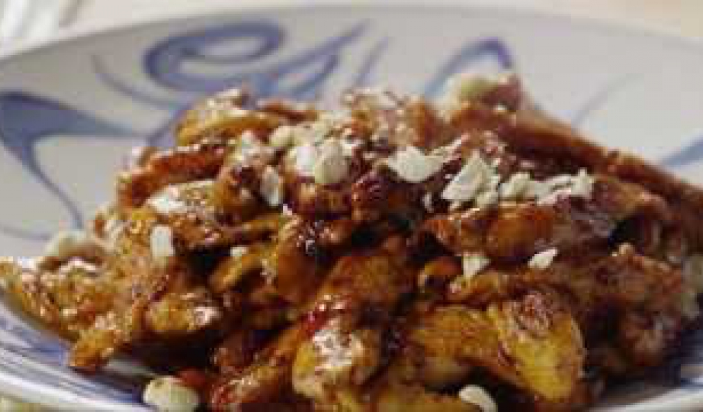 Watch how to make a quick-and-easy, stir-fried chicken dinner with a tangy, sweet-and-spicy sauce. You’ll stir-fry strips of skinless chicken with garlic and ginger. Hot sauce and a little brown sugar give the sauce its sweet-spicy character. Enjoy it with rice or noodles.