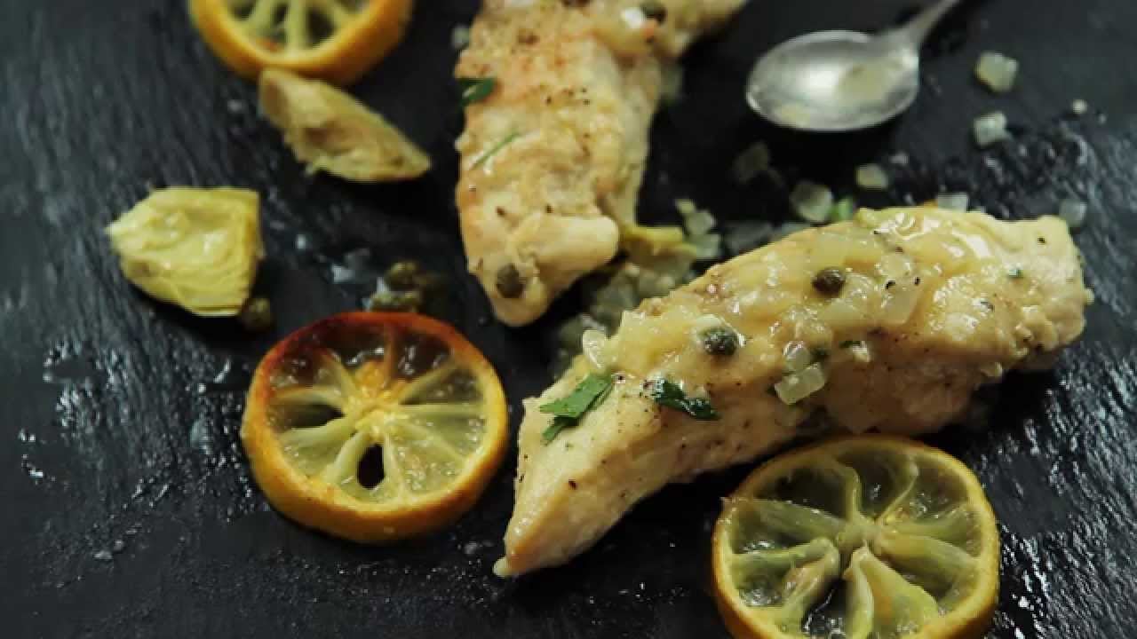 Watch how to make this impressive and light dinner using chicken breasts, garlic, white wine, lemons, capers and artichokes. It’s delicious on its own or topped on a bed of linguine.