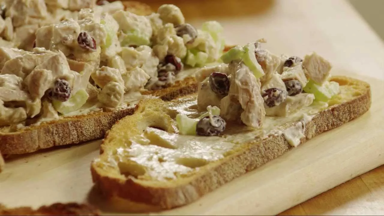 Watch how to turn leftover grilled chicken into a delicious salad. Mix the cooked chicken with cashews, dried cranberries, seasonings, and mayonnaise; this simple salad makes a 5-star lunch served on a sandwich or simply over greens.