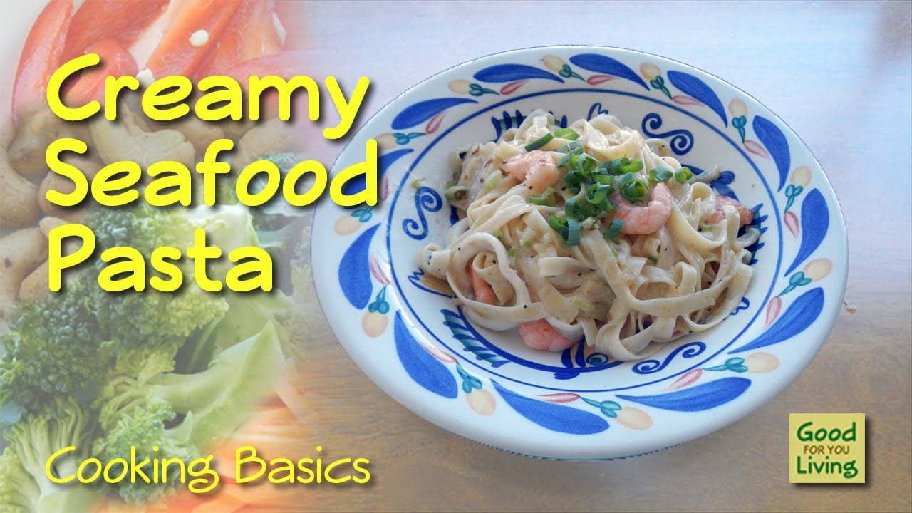 Learn a quick, simple and delicious creamy seafood pasta recipe. With everything prepared you can cook this meal in 5 minutes flat. Rich and filling you can have this as a starter or a main meal.