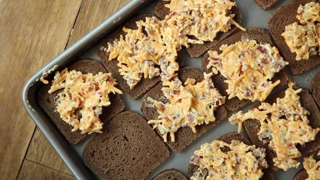 Get this popular recipe for Bacon Cheese Puffs at http://allrecipes.com/recipe/bacon-cheese-puffs/detail.aspx In this video, we show you how to make cheesy bread toasts with bacon and mustard. We use pumpernickel party …
