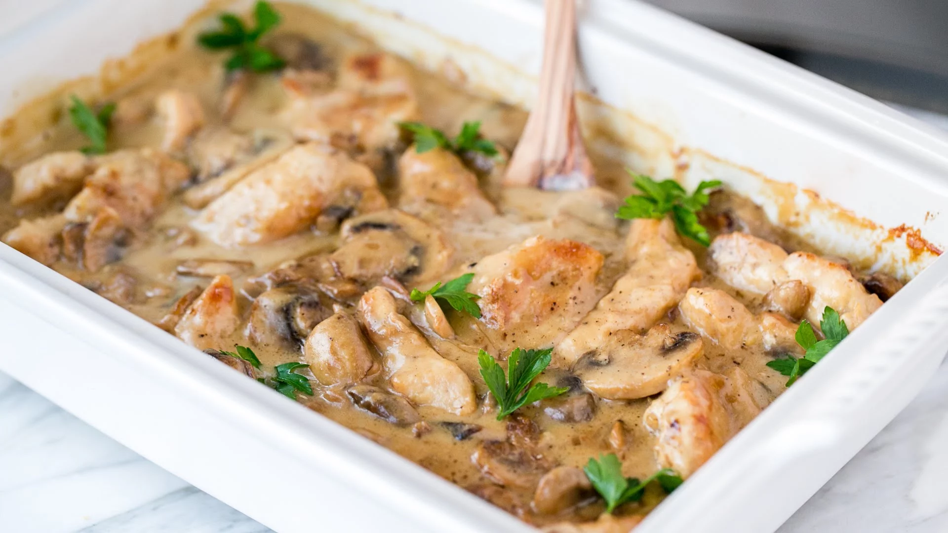This easy chicken casserole recipe is delicious, and it is entirely made from scratch. No canned soup in this baby. Liz shgows you how.
