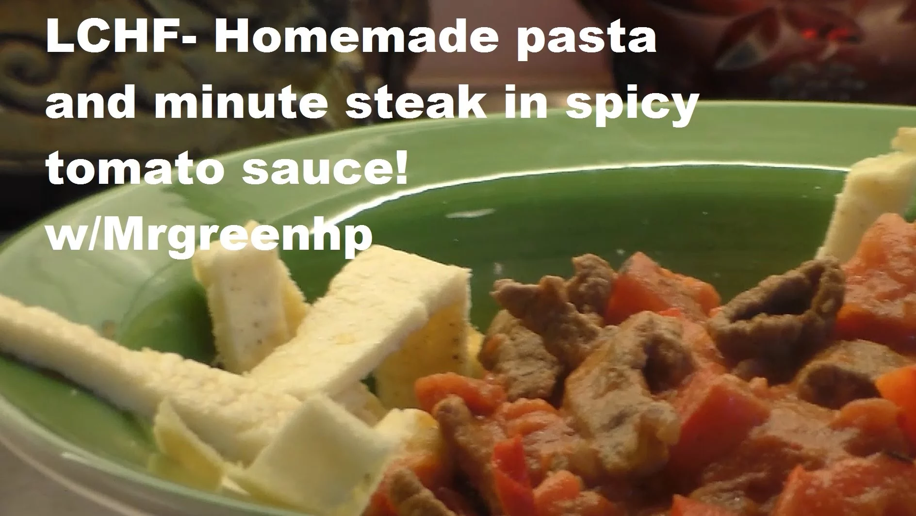 Minute steak in spicy tomato sauce with homemade pasta – LCHF For 1 person Ingredients: Minute steak in spicy tomato sauce: 1/2 Paprika 500 grams Crushed tomatoes 1/2 Yellow onion …
