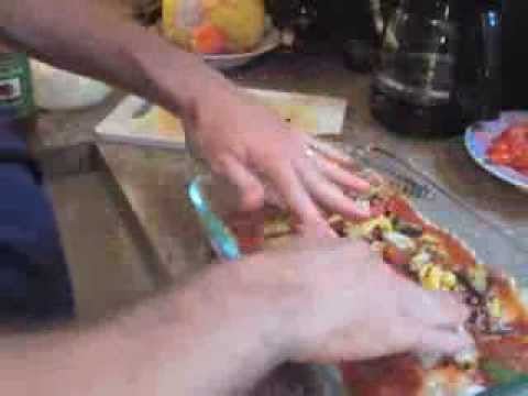 Begin by preparing the noodles by boiling in water for about 10 minutes, or just until tender. Next, slice up the veggies into pieces appropriate for grilling, and set aside. Now we can prepare our cheese mixture by emptying the container of ricotta cheese into a medium size bowl, adding the egg, and some fresh oregano. Mix the egg and cheese together until consistent and set aside.