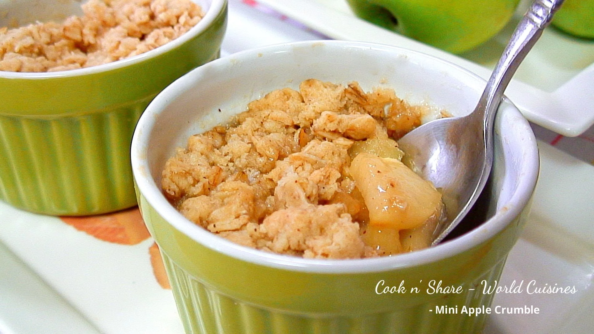 Mini apple crumble is an easy and simple apple based dessert. Get the full recipe at: http://cooknshare.com/recipe/mini-apple-crumble/