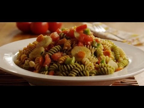 See how to easily turn an assortment of fresh vegetables into a tasty, Italian-style pasta salad. It only takes a few minutes!