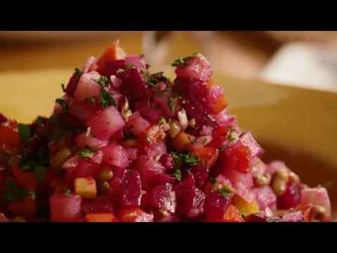 Watch how to put together this lightly-seasoned salad that makes the mild flavor of beets really shine! This popular Ukrainian salad goes great with meat and poultry dishes (especially Chicken Kyiv) with a side of mashed potatoes.