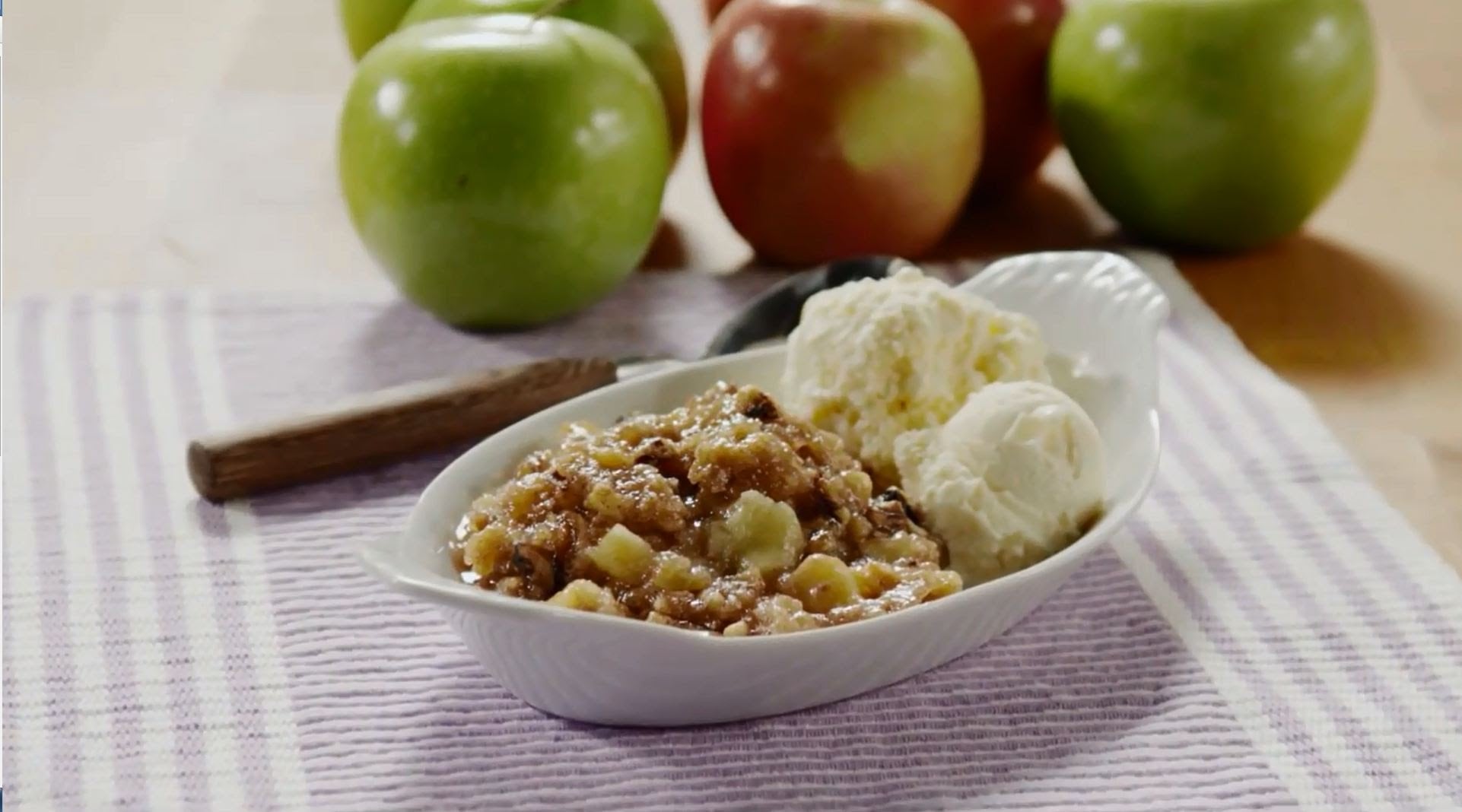 In this video, we’ll show you how to make a homey, comforting Apple Crisp right inside a slow cooker. The apples are cooked together with cinnamon and nutmeg until tender, under a walnut crumble topping.
